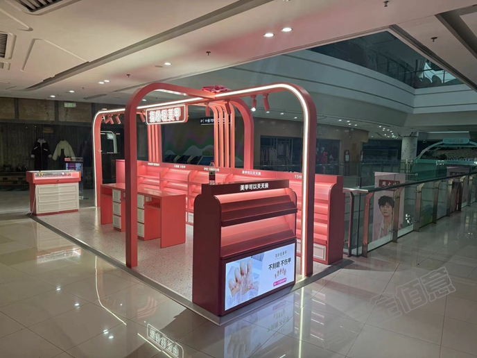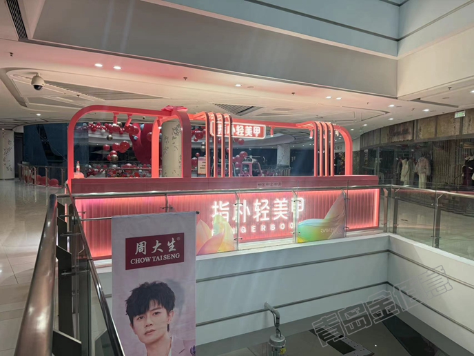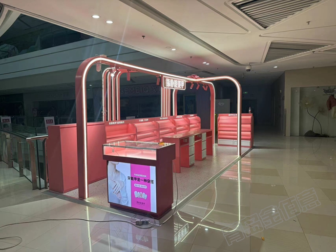 質(zhì)樸美甲書院路萬達店元旦前如期交工啦!這是連鎖店里面較大的店面了,粉紅色烤漆展柜在同類也是最漂亮的,顧客好多。地面鋪設(shè)仿水磨石瓷磚,特別溫馨;寬大的壓邊條,美觀厚重,結(jié)實耐用。展柜采用E1級高密底板,油漆采用水性漆。水漆展柜,環(huán)保無味,即裝即用。展柜靠護欄的一面采用柵欄創(chuàng)意,發(fā)光字熠熠生輝,很遠就能看到??蚣荑偳禠ED燈帶,區(qū)域感十足;頂部蝴蝶結(jié)造型,好溫馨的中國風。做好展柜,還是找青島金佰意。
