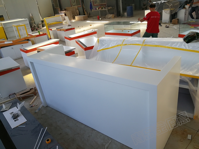 青島金佰意定做各種樣式的接待臺(tái)收銀臺(tái)。從材質(zhì)分:烤漆、實(shí)木皮、人造石、大理石、不銹鋼、實(shí)木、免漆板等等;從造型分中式、歐式等;從功能分:接待、收銀、接待兼收銀、售賣(mài)等。青島金佰意展具有限公司是一家集店面裝修和展柜生產(chǎn)為一體的綜合性公司,為開(kāi)店提供店面設(shè)計(jì)、店面裝修、展柜制作一站式服務(wù),同時(shí)承接展覽搭建及企業(yè)展廳。二十一年老品牌,自有工廠,專門(mén)制作珠寶展柜、服裝展柜、化妝品展柜、眼鏡展柜、食品展柜、數(shù)碼展柜、電器展柜、箱包展柜、鞋類展柜、煙酒展柜等各類展柜。能為客戶進(jìn)行快速、大規(guī)模、低成本店面復(fù)制。