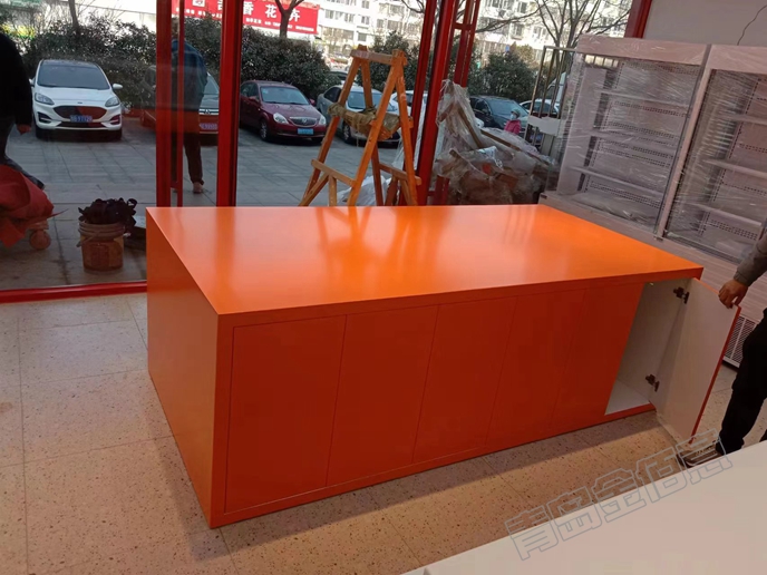 笑蕾餅店奉天惠店安裝完成??酒嵴构褚还铂F(xiàn)烤展柜、陳列展柜、收銀臺(tái)、促銷(xiāo)柜、冰箱柜五種類(lèi)型,很簡(jiǎn)潔很實(shí)用很親民。采用E1高密度板和水性漆烤漆,環(huán)保無(wú)味,即裝即用。柜臺(tái)內(nèi)部都有可調(diào)節(jié)的隔板,方便儲(chǔ)物;門(mén)都裝有反彈器,開(kāi)關(guān)非常方便;陳列柜分為上下兩層,既有層次感又能多陳列產(chǎn)品。做面包展柜,還是找青島金佰意。